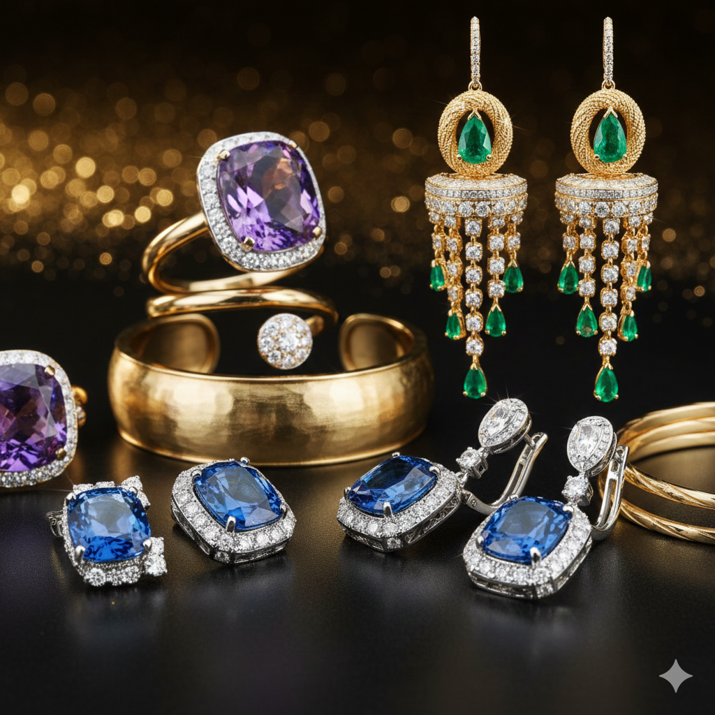 Always store your pieces separately, avoid perfume or lotion contact, and clean them with a soft cloth after use. Proper care protects the shine of gold, diamonds, and gemstones for years to come.